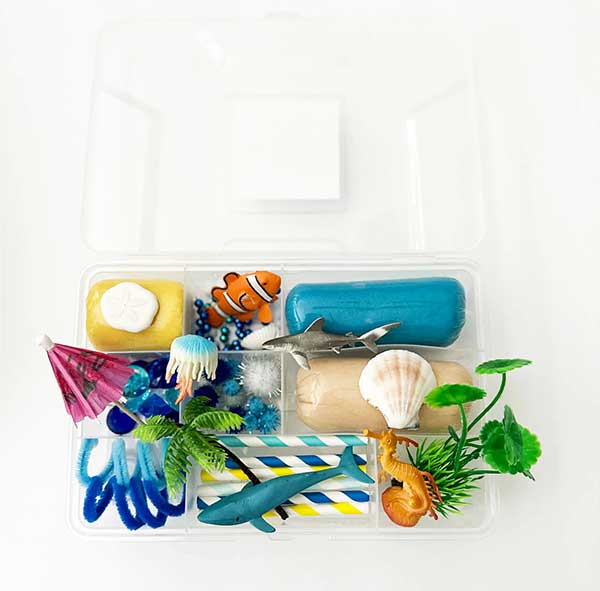 - Themed loose parts (rocks, gems, plants, shells, etc. depending on theme)